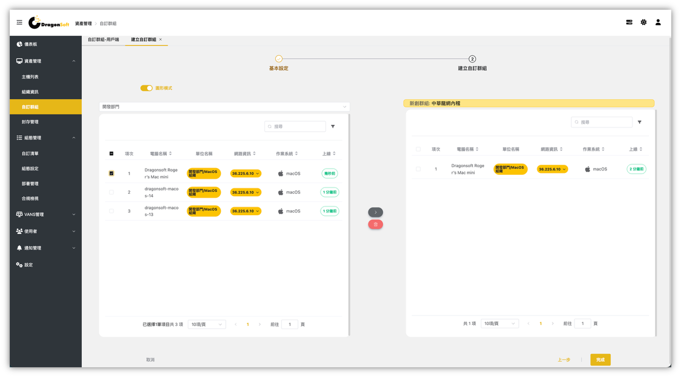 依單位/組織進行電腦主機管理外,亦可彈性、靈活地依應用系統或指定任意電腦主機組成群組